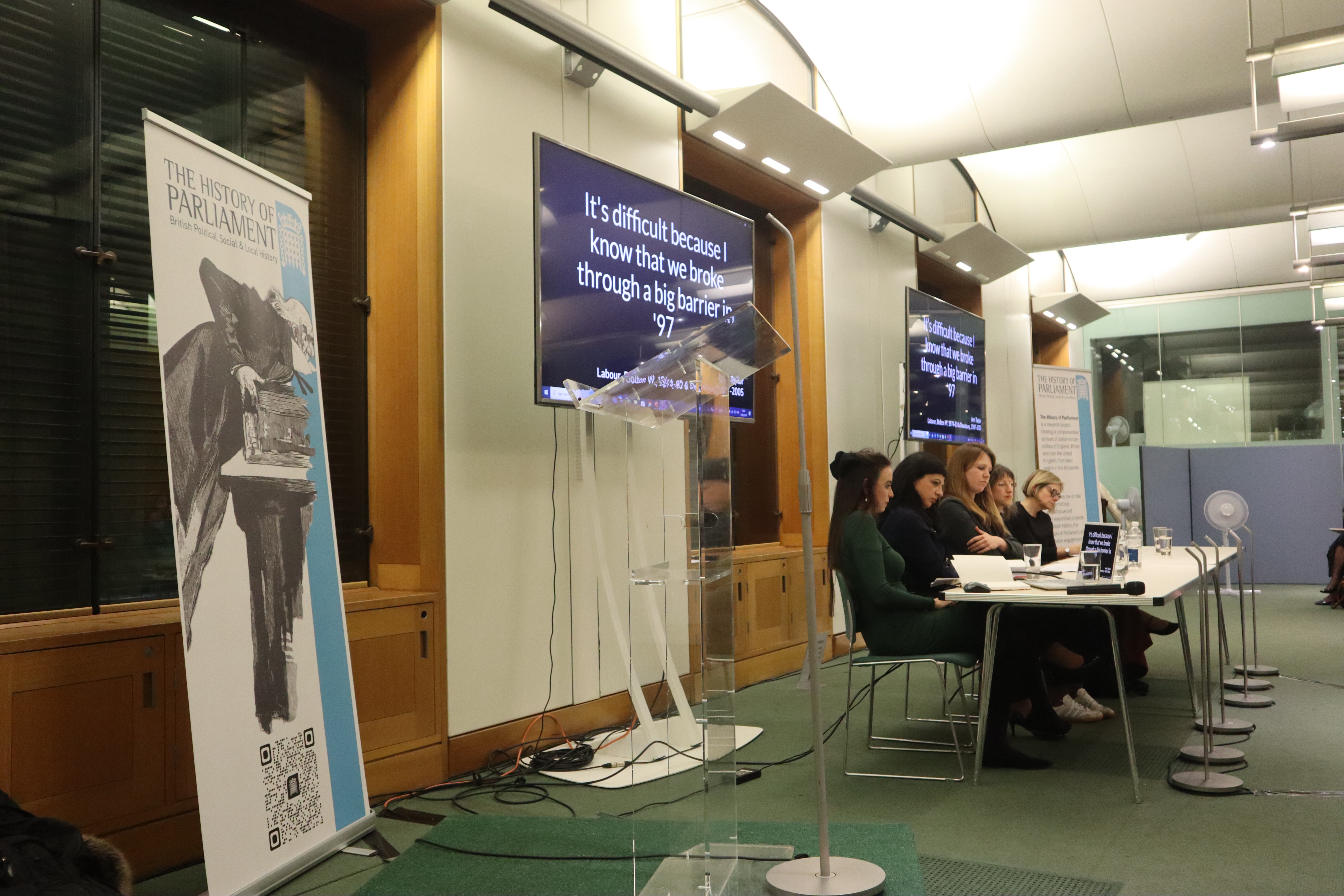 Alongside the organisers, a distinguished panel of historians and political scientists, Professors Sarah Childs, (University of Edinburgh), Helen McCarthy (University of Cambridge), and Rainbow Murray (Queen Mary University of London) gathered at Portcullis House to reflect on the changes in the lives of women parliamentarians entering parliament in or just before 1997. Drawing on a range of interviews from the History of Parliament’s Oral History Project, the panel questioned whether the increase in women MPs has altered the culture and working practices of parliament. They also reflected on whether the presence of more women at Westminster has made a difference to how women talk about their lives as parliamentarians.