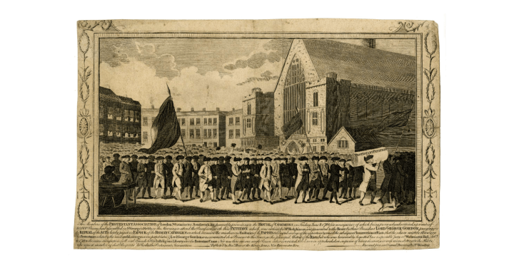 While the original delegation bringing the Protestant Association’s petition to Westminster had been orderly enough, by the late afternoon of 2 June 1780 the Palace of Westminster was clogged with protesters. Protesting later turned to rioting, and in London there were days of lawlessness, with houses and chapels pulled down, prisons broken open and widespread looting. Only after several days was order restored by the army and militia.